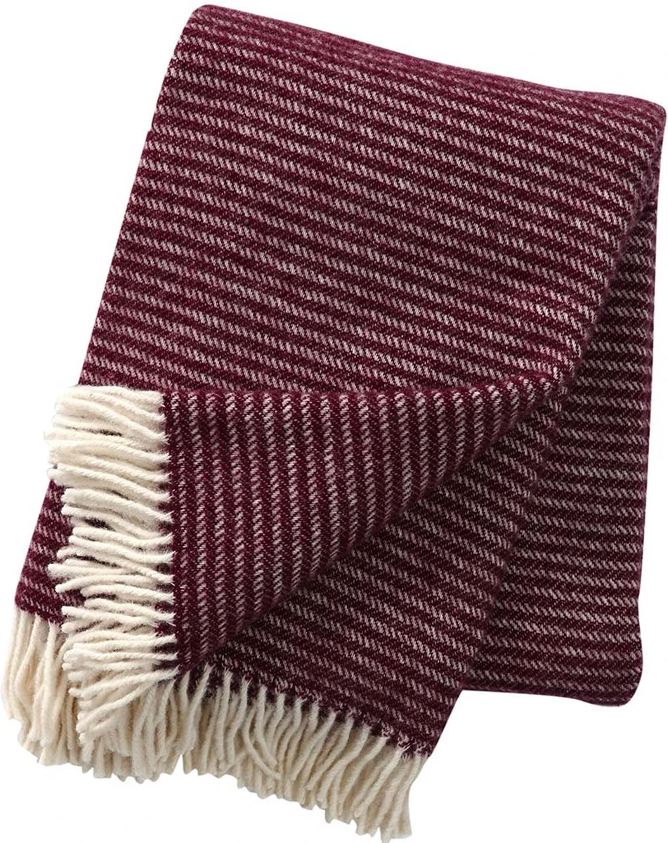 Plaid Ralph heeft een ingeweven streepmotief dat aan beide kanten gelijk is en is aan de uiteinden mooi afgewerkt met zachte witte franjes. De serie Ralph dekens is er in veel verschillenden kleuren. De kleur Aubergine is mooi donker paars.