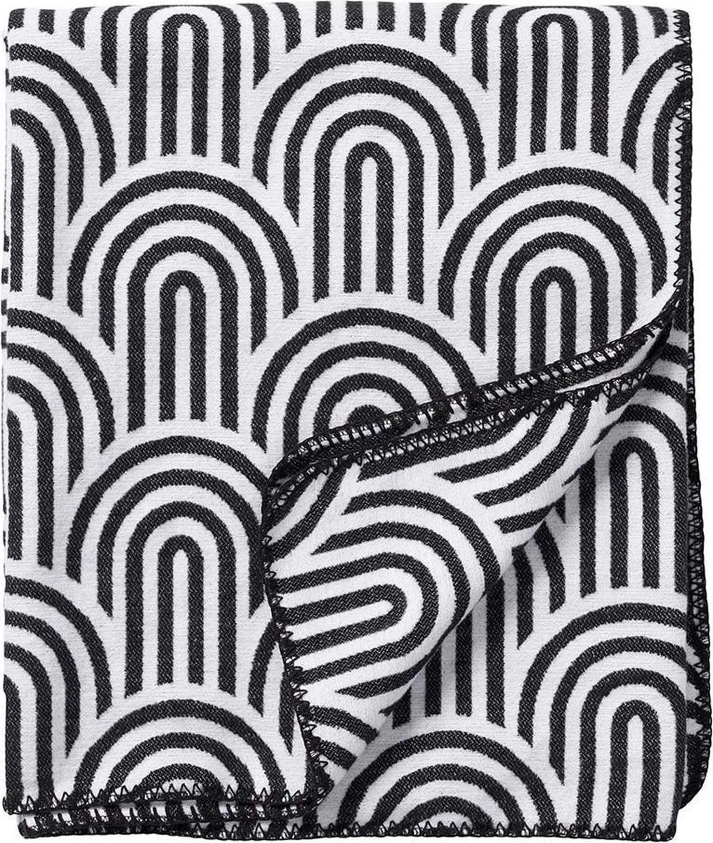 Arcade heeft een mooi ingeweven arcade motief dat refereert aan de arcade bogen die men in de architectuur kent. De basis van de deken is ecru en het motief is er met een zwarte draad ingeweven.