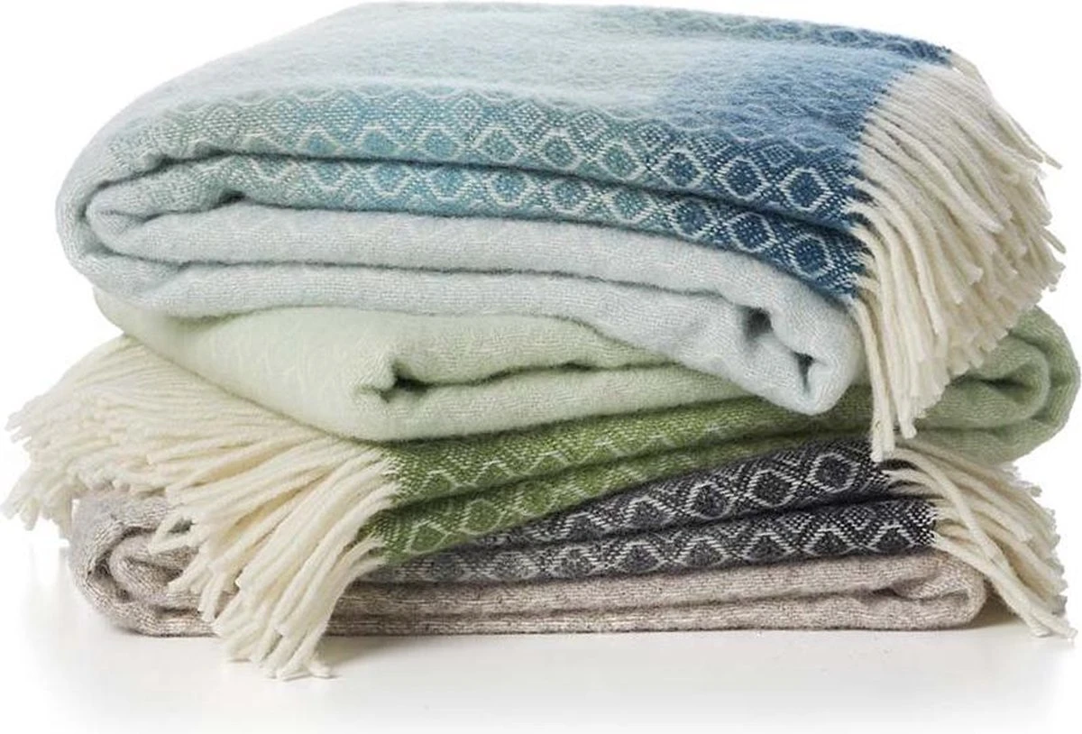 Our classic throws are made of 100% lambs wool. The definition of lambs wool is the first shearing of the sheep that is no older than six months. During later years we have also been able to produce throws in ecologic lambs wool. The ecologic lambs wool is totally free of pesticides and no chemicals or antibiotics have been used during the breeding of the sheep.