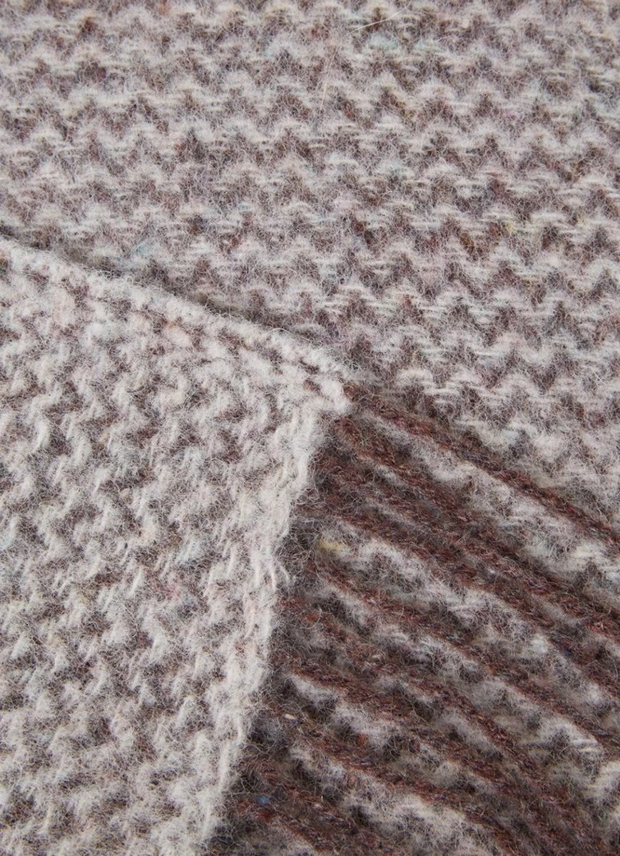 Het plaid Wave heeft een ingeweven motief en is aan de uiteinden mooi afgewerkt met franjes in de kleur van het plaid. Het plaid is gemaakt van gewone lamswol met receycled wool.